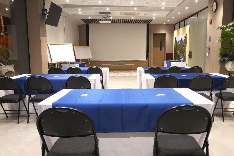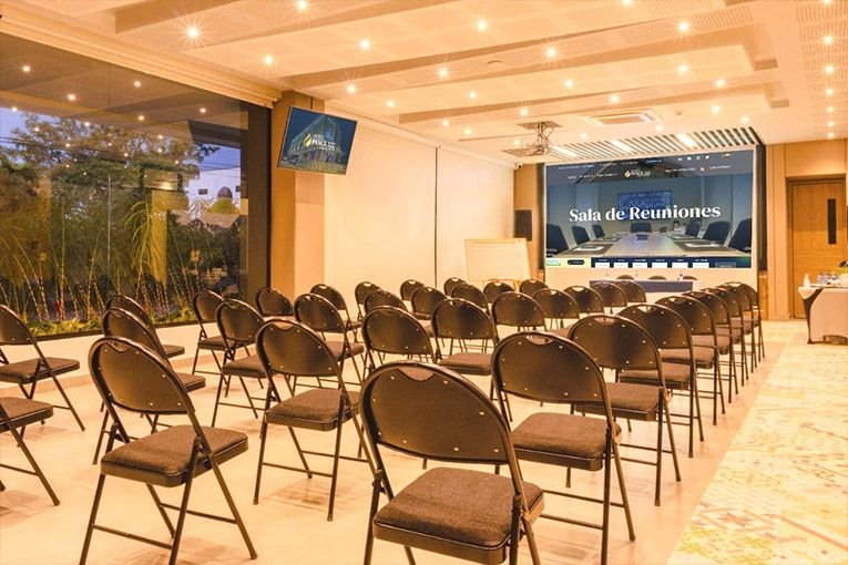 Nuestro salón de eventos, con capacidad para 80 personas, está equipado para brindarte una experiencia inigualable. Es el lugar ideal para eventos empresariales, académicos y sociales con un espacio amplio y cómodo.